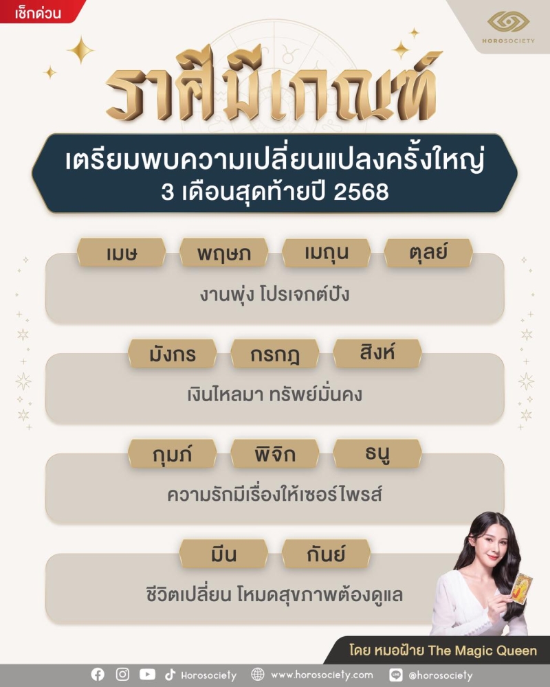 วันที่ 7 ก.ย. 68 เพจHorosociety เผย หมอฝ้ายTheMagicQueen เผย 12 เตรียมพบความเปลี่ยนแปลงครั้งใหญ่ 3 เดือนสุดท้ายของปี