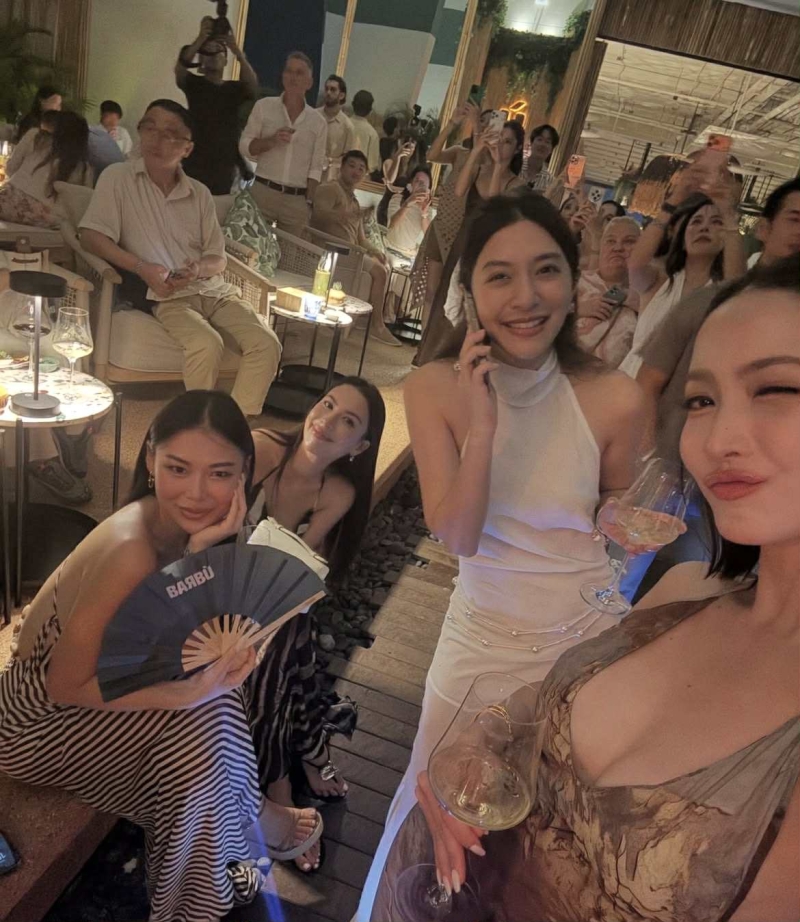 เพื่อนๆ คนดังในวงการทั้งหลายต่างทยอยมาร่วมแสดงความยินดี ทุกคนแต่งตัวเรียบหรู ดูดีมีรสนิยม