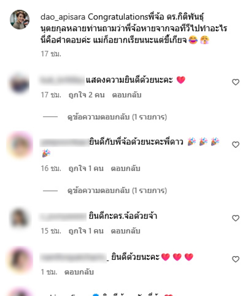 Congratulationsพี่จ้อ ดร.กิติพันธุ์ นุตยกุลหลายท่านถามว่าพี่จ้อหายจากจอทีวีไปทำอะไร นี่คือคำตอบค่ะ แม่ก็อยากเรียนนะแต่ขี้เกียจ ท่ามกลางคนในวงการต่างแสดงความยินดีกันอย่างมาก