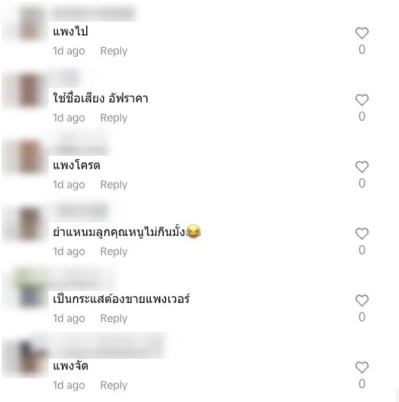 ด้านชาวเน็ตก็เข้ามาคอมเมนต์เห็นด้วยเพียบ เช่น ดาราขายของแพงเกินไป เอาชื่อเสียงมาขายมากกว่า,แพงไป,แพงจัด,รู้แค่แถวบ้าน50ได้เยอะและอร่อยมาก5555 เป็นต้น