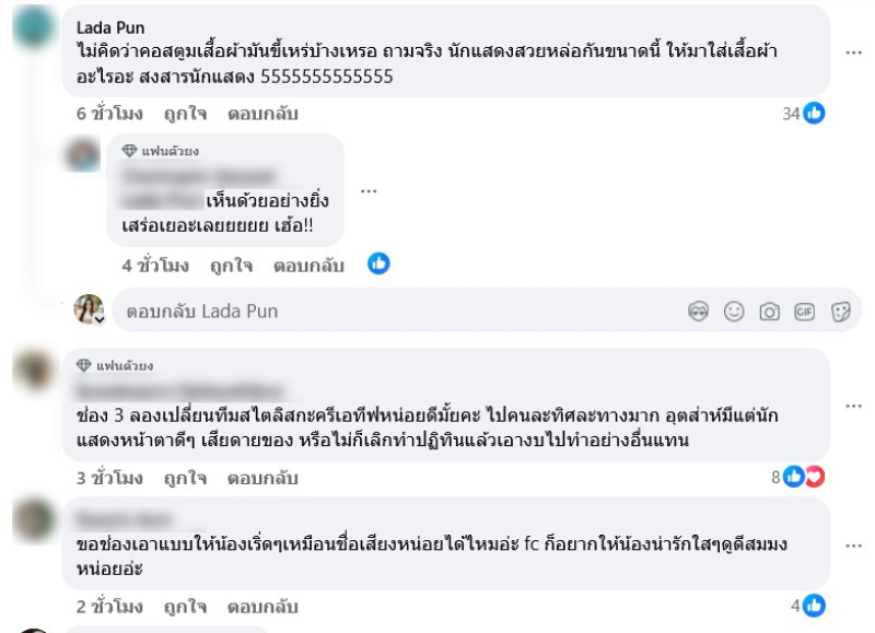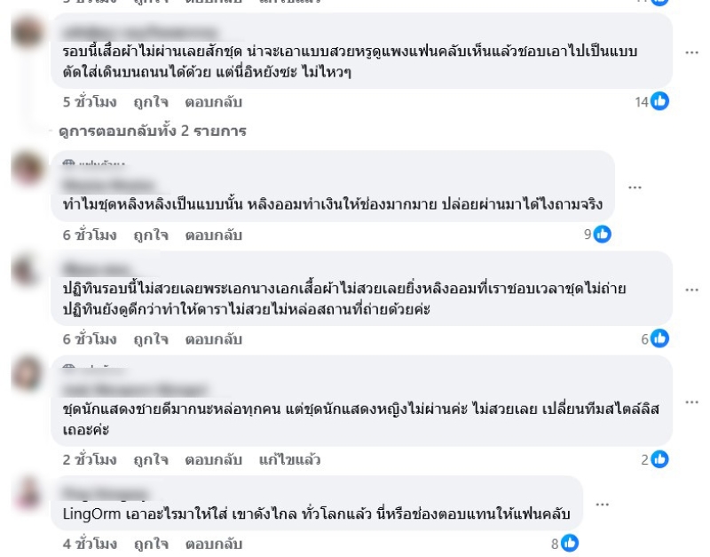 แต่ทว่าทำเอาแฟนๆต่างจับจ้องไปที่ โบว์ เมลดา และคู่จิ้นดัง อย่าง หลิงหลิงและ ออม กรณ์นภัส ที่คู่ของทั้ง3คนนั้น ดูไม่เข้าพวกเลย จนทำให้แฟนๆต่างเข้ามาคอมเมนต์สนั่น เช่น ไม่คิดว่าคอสตูมเสื้อผ้ามันขี้เหร่บ้างเหรอ ถามจริง นักแสดงสวยหล่อกันขนาดนี้ ให้มาใส่เสื้อผ้าอะไรอะ สงสารนักแสดง 5555555555555,ถ้าช่องมีคอสตูมและทีมงานทำได้แค่นี้ . แนะนำเอาแบรนด์ของหลิง ออมมาใส่ถ่ายโปรโมทก็ได้นะ มันสวยและมีสไตส์กว่าเยอะ ,รอบนี้เสื้อผ้าไม่ผ่านเลยสักชุด น่าจะเอาแบบสวยหรูดูแพงแฟนคลับเห็นแล้วชอบเอาไปเป็นแบบตัดใส่เดินบนถนนได้ด้วย แต่นี่อิหยังซะ ไม่ไหวๆ เป็นต้น