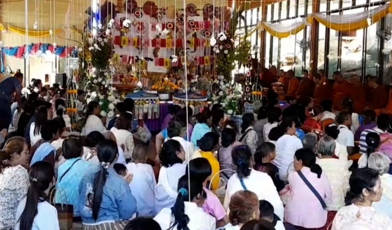 โดยตลอดทั้งวันมีประชาชนหลั่งไหลเข้ามาทำบุญต่อเนื่องจนรถยนต์และรถจักรยานยนต์จอดล้นวัดไปถึงถนนทางเข้าหมู่บ้าน สะท้อนถึงพลังศรัทธาและความสามัคคีของชาวพุทธในพื้นที่ชายแดน ระหว่างพระสงฆ์กำลังสวดเจริญพระพุทธมนต์และอัญเชิญผ้าพระกฐินถวายตามประเพณี ได้เกิดเหตุการณ์สุดฮือฮา เมื่อมีผู้เข้าร่วมพิธีจำนวนมากมองเห็น ลักษณะคล้ายตัวเลขปรากฏบนท้องฟ้า เหนือองค์พระธาตุของวัด เป็นกลุ่มเมฆสีดำเรียงคล้าย “เลข 37” ทำเอาชาวบ้านพากันแหงนมองและถ่ายรูปเก็บไว้ พร้อมพูดเป็นเสียงเดียวกันว่า “เลขแห่งบุญ”