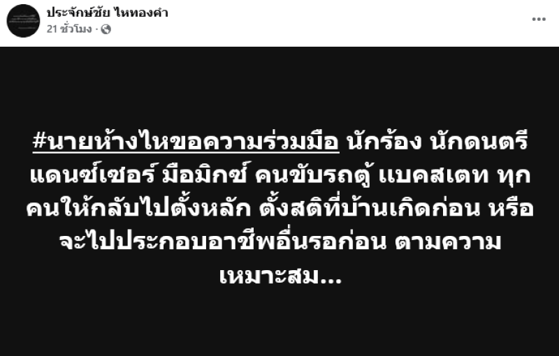 นายห้างประจักษ์ชัย ประกาศพักการแสดง ให้ทุกคนกลับไปตั้งหลัก