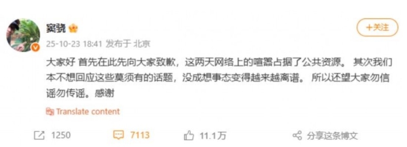 ล่าสุด ทาง โต้ว เซียว ไม่รอช้า โพสต์แถลงผ่านโซเชียลส่วนตัว ขอโทษต่อความเข้าใจผิดที่เกิดขึ้น พร้อมยืนยันชัดว่า “อย่าเชื่อข่าวลือ และอย่าช่วยกันเผยแพร่เรื่องที่ไม่เป็นความจริง”