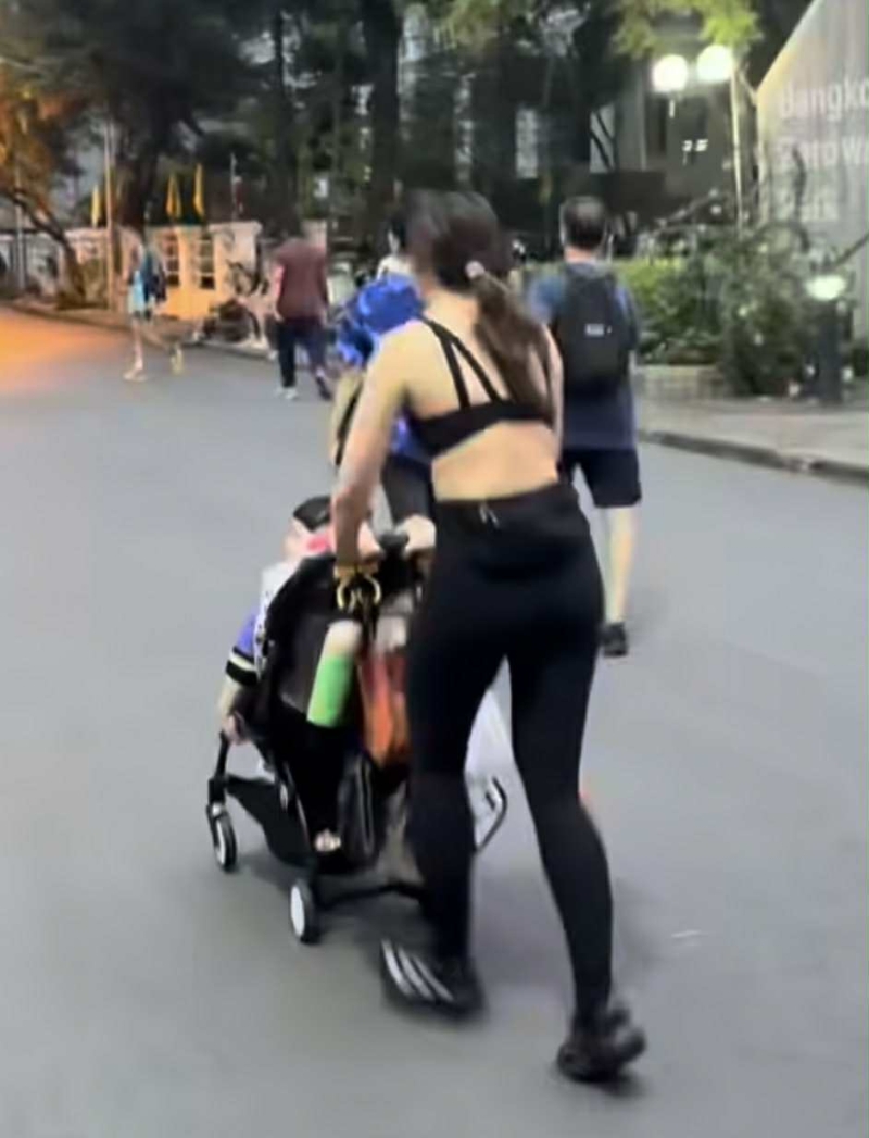 โมเมนต์ที่แฟนๆ เห็นแล้วต้องยิ้มคือ พ่อน็อต อุ้มน้องเกล ขี่หลัง ขณะที่แม่ชม วิ่งตามพร้อมกับรถเข็นเด็ก