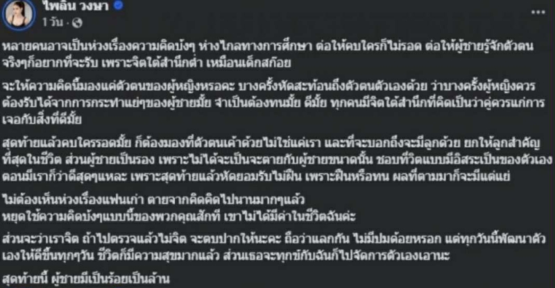 เรียกได้ว่า นาทีนี้ ไม่มีใคร ไม่รู้จัก กับ แบม ไพลิน เดินหน้าชีวิตเต็มที่ทั้งงาน และ ดูแลลูก แต่ก็ยังไม่พ้นจากเสียงวิจารณ์ในโลกออนไลน์ เมื่อ เธอ เผยข้อความของชาวเน็ตที่วิจารณ์เกี่ยวกับชีวิตรักของเธอ