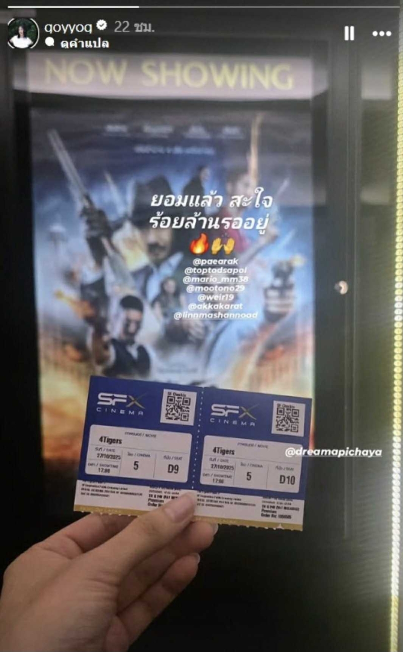 ล่าสุด สาวก้อยทำแฟนๆ ฟินหนัก หลังโพสต์สตอรี่รูปตั๋วหนังเรื่อง เสือ พร้อมแท็กตรงถึงหนุ่มท็อป ทำให้หลายคนมองว่า เป็นสัญญาณน่ารักระหว่างเพื่อนที่มีเคมีพิเศษ