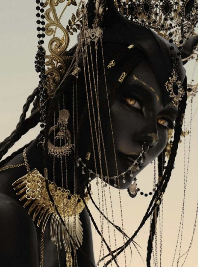 ทุกดีเทลของชุด ถูกออกแบบมาอย่างประณีต เครื่องประดับสีทองที่เข้ากับผิวดำสนิท ดวงตาสีทองเปล่งประกายเหมือนมีเวทมนตร์ และท่าโพสสุดปังที่ราวกับหลุดมาจากตำนานเทพเจ้าอียิปต์ ทำให้ภาพรวมของลุคสมบูรณ์แบบและน่าจดจำ