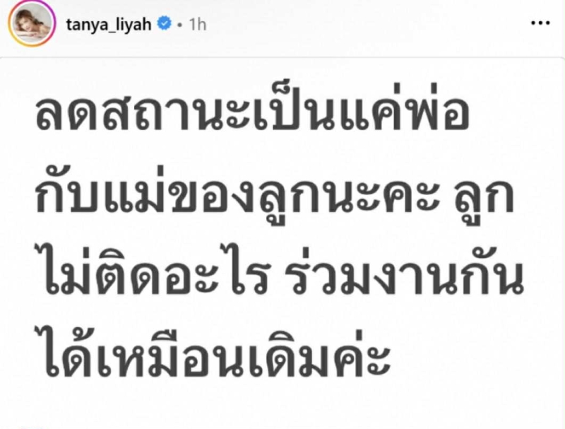 ช่วงหลังมานี้ ธัญญ่า ได้รับผลกระทบทางใจจากพฤติกรรมของอีกฝ่ายอยู่หลายครั้ง จนในที่สุด เลือกจะถอยออกมา เพื่อรักษาความรู้สึกของตัวเอง และมุ่งเน้นไปที่การเลี้ยงดู น้องลียา ให้ดีที่สุด