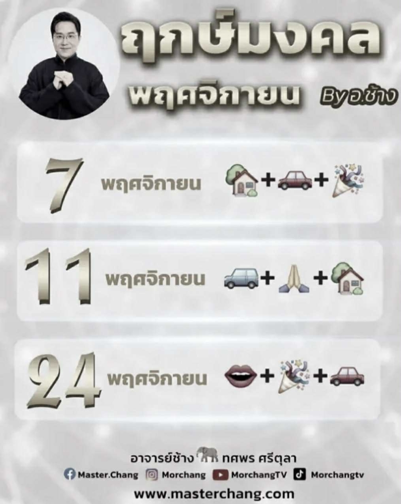 หมอช้าง เผยฤกษ์มงคล เดือนพฤศจิกายน 2568 ซื้อบ้าน-รถ-ขึ้นบ้านใหม่ เสริมโชคสิ้นปี