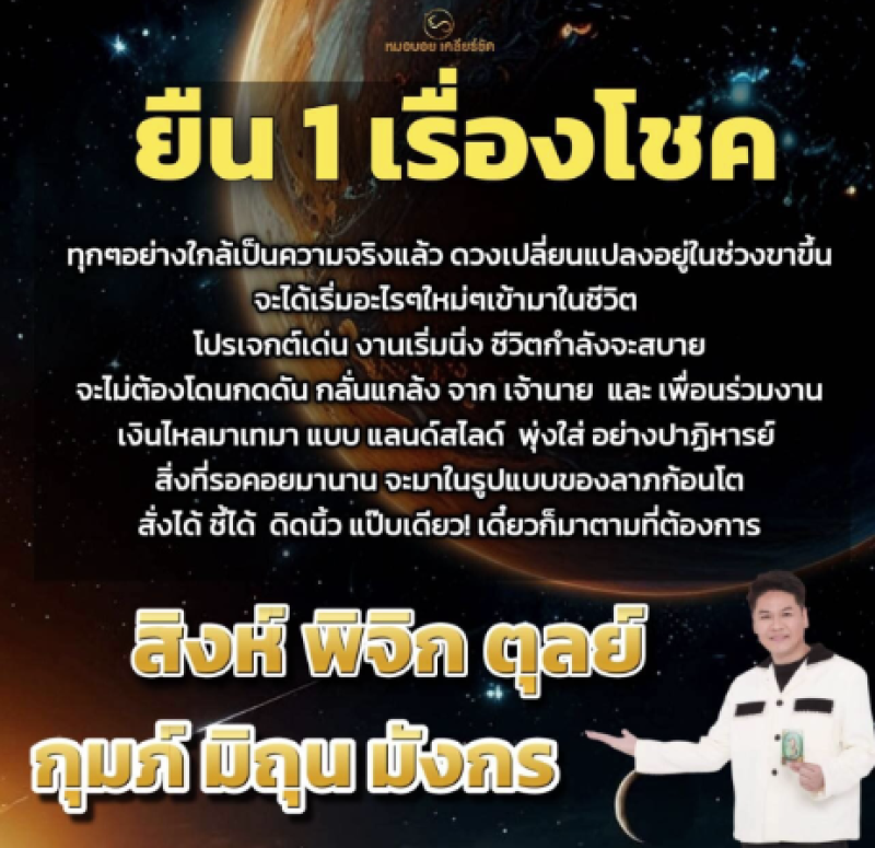 อีกทั้ง หมอบอย ยังแนะนำให้ใช้โอกาสนี้ให้เต็มที่ ลงมือทำด้วยความมั่นใจ ตั้งใจ และ รอบคอบ เพราะดวงกำลังเปิดเต็มที่ โชค และ สิ่งดีๆ กำลังรอเข้ามาเติมเต็มชีวิตช่วงปลายปี