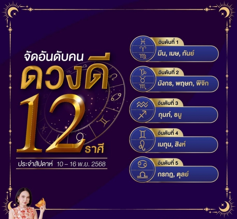 หมอเชอร์ เป๊ะเว่อร์ จัดอันดับคนดวงดี 12 ราศี ประจำสัปดาห์ 10 - 16 พฤศจิกายน 2568