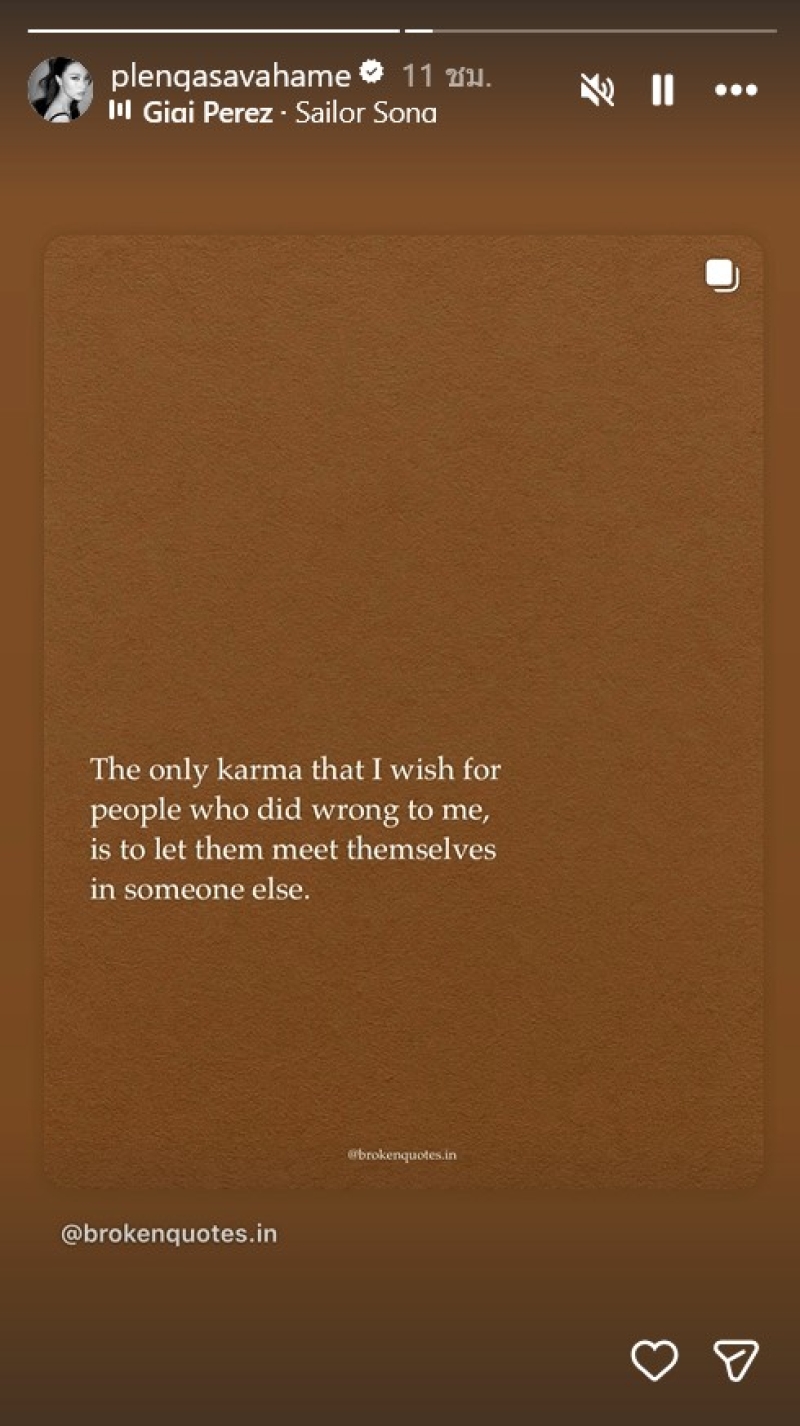 ล่าสุด เพลง ชนม์ทิดา ได้โพสต์สตอรี่ข้อความภาษาอังกฤษที่ชวนให้ตีความว่า "The only karma that I wish for people who did wrong to me, is to let them meet themselves in someone else." แปล "สิ่งเดียวที่ฉันอยากให้เกิดขึ้นกับคนที่ทำไม่ดีกับฉัน คือขอให้พวกเขาได้พบเจอคนที่เหมือนตัวเอง"