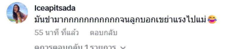 พร้อมเขียนข้อความระบุว่า ฉันอั้นไม่ไหวแล้วค่ะ!! โดยทางด้านเจ้าตัวได้เข้ามาคอมเมนต์แซวคลิปดังกล่าวอีกว่า มันขำมากกกกกกกกกกกจนลูกบอกเขย่าแรงไปแม่