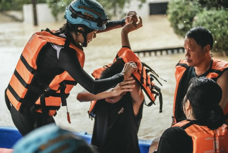 โดย เธอ ได้โพสต์ภาพบรรยากาศผ่าน nat_officialaccount พร้อมข้อความบรรยายถึงความยากลำบากของการช่วยเหลือ ท่ามกลางน้ำลึก และ อากาศหนาว