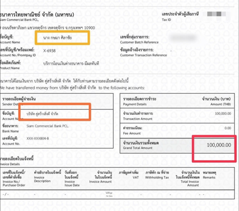 สิ่งที่ทำให้แฟนๆ สะดุดตาในโพสต์ของเอมี่ คือชื่อบัญชีผู้โอนเงิน ซึ่งเป็นชื่อบริษัทของทั้งคู่ บริษัท คู่สร้างสิ่งดี จำกัด ชื่อที่มีความหมายดี และ สะท้อนตัวตนของทั้งสองได้อย่างชัดเจน