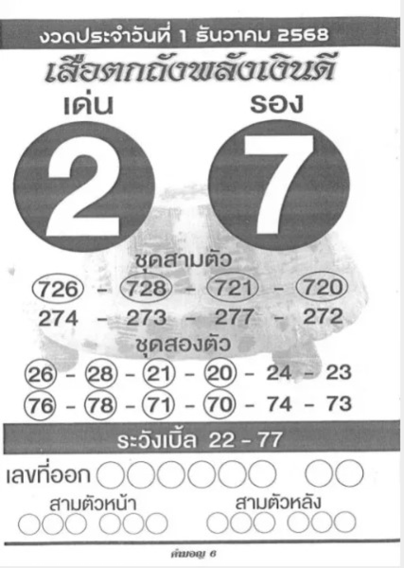 4.เลขเด็ด เสือตกถังพลังเงินดี ลุ้นวันที่ 1 ธันวาคม 68