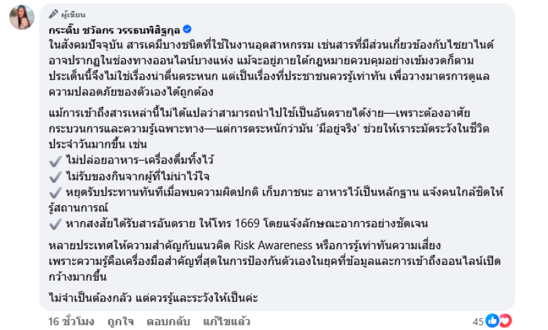 งานนี้ทำเอาโซเชียลต่างเห็นด้วยกันอย่างมากเมื่อล่าสุดนักแสดงสาว กระติ๊บ ชวัลกร วรรธนพิสิฐกุล ได้ออกมาแสดงความเห็นถึงประเด็นการเสียชีวิตของ ณัฐวุฒิ ปงลังกา (นัทปง) ที่ถูกจับตา เมื่อผลตรวจนิติวิทยาศาสตร์ยืนยันว่าพบ สารไซยาไนด์