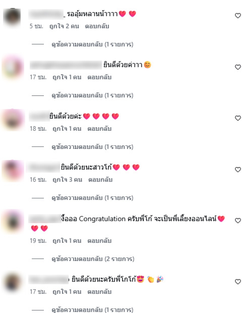 ท่ามกลางแฟนๆเเละคนในวงการต่างเข้ามาคอมเมนต์แสดงความยินดีกันอย่างมาก ถือว่าเป็นข่าว 2 เด้งเลยทีเดียว