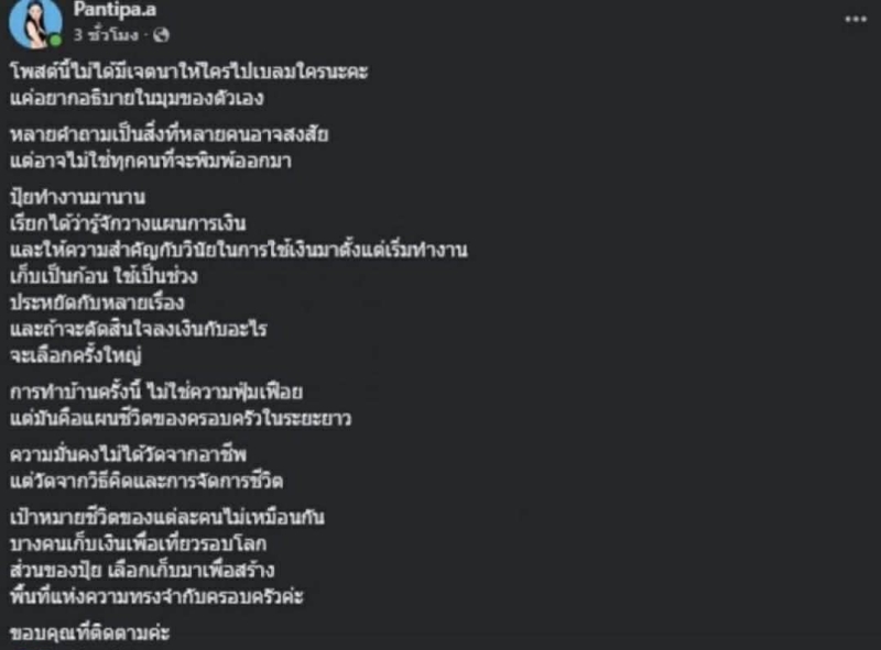 เมื่อ ปุ้มปุ้ย นำเรื่องนี้มาแชร์ต่อ ยิ่งทำให้หลายคนเข้าใจมุมคิด และ วิถีชีวิตของเธอมากขึ้น พร้อมชื่นชมในวินัยทางการเงินที่ยึดถือมาตลอด