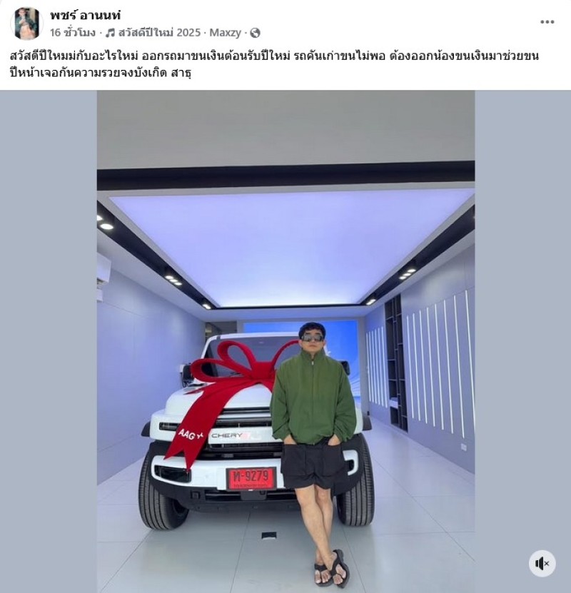 เรียกได้ว่า เป็นผู้กำกับและพิธีกรดัง อย่าง พชร์ อานนท์ ที่มีผลงานในวงการมานับไม่ถ้วน ล่าสุด เจ้าตัวได้โพสต์รถหรูคันใหม่ต้อนรับปีใหม่ พร้อมระบุแคปชั่่นว่า สวัสดีปีใหมม่กับอะไรใหม่ ออกรถมาขนเงินต้อนรับปีใหม่ รถคันเก่าขนไม่พอ ต้องออกน้องขนเงินมาช่วยขน ปีหน้าเจอกันความรวยจงบังเกิด สาธุ