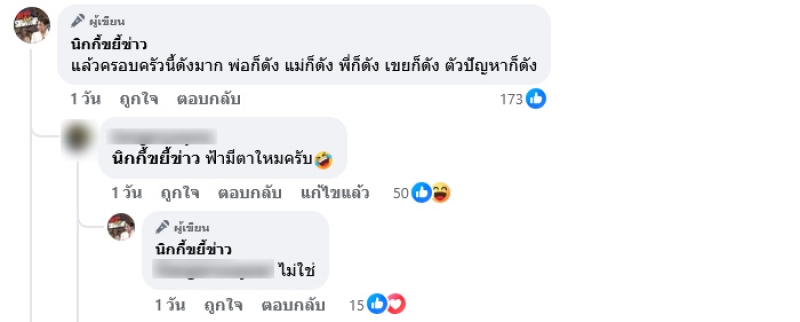 ครอบครัวฝ่ายชายรู้เห็น แต่โทษฝ่ายหญิงที่ไม่อยู่บ้าน ทั้งที่ลูกชายตัวเองพาชู้เข้าบ้าน ถ้าอักษรย่อขึ้นมาสะเทือนทั้งโซเชียล แล้วครอบครัวนี้ดังมาก พ่อก็ดัง แม่ก็ดัง พี่ก็ดัง เขยก็ดัง ตัวปัญหาก็ดัง