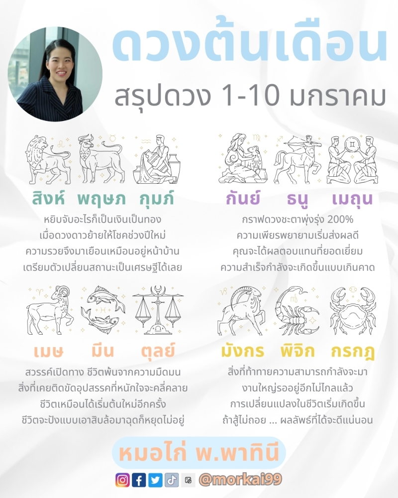 ล่าสุดนักพยากรณ์ดังอย่าง หมอไก่ พาทินี ที่ล่าสุดได้ออกมาเปิดดวงเดือนมกราคม 2569 ถึถง 3 ราศีดวงชะตาพุ่ง 200 % ได้แก่ ราศีกันย์, ธนู,เมถุน โดยมีรายละเอียดดังนี้