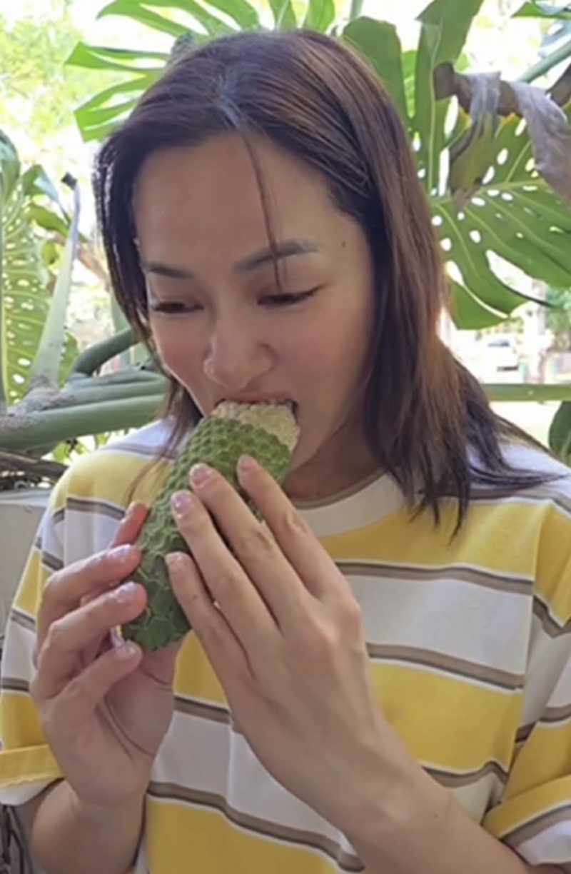 โดย เธอ เล่าว่า รสชาติของผลมอนสเตอร่าสุก มีความหวานอมเปรี้ยว กลิ่นหอมเฉพาะตัว และเนื้อสัมผัสนุ่มฉ่ำ แต่ก็มีช่วงที่เผลอรับประทานส่วนที่ยังไม่พร้อม ส่งผลให้เกิดความระคายเคืองเล็กน้อยในช่องปาก จนต้องหาวิธีบรรเทาอาการกันแบบขำๆ