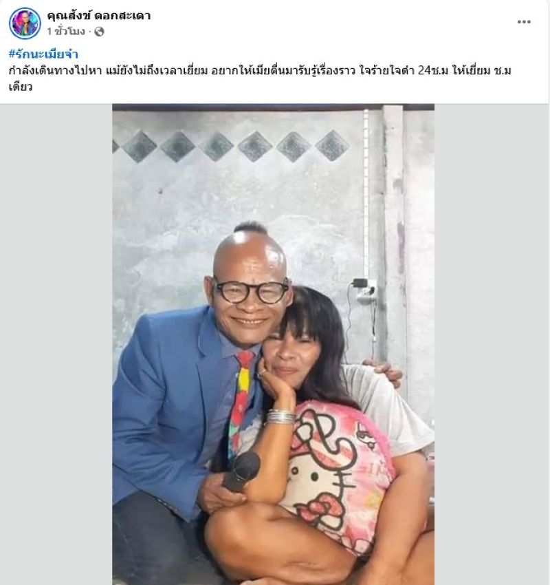 โดยโพสต์ล่าสุด ได้เผยว่า รักนะเมียจ๋า กำลังเดินทางไปหา แม้ยังไม่ถึงเวลาเยี่ยม อยากให้เมียตื่นมารับรู้เรื่องราว ใจร้ายใจดำ 24ช.ม ให้เยี่ยม ช.ม เดียว ท่ามกลางแฟนๆต่างส่งกำลังใจให้จำนวนมาก