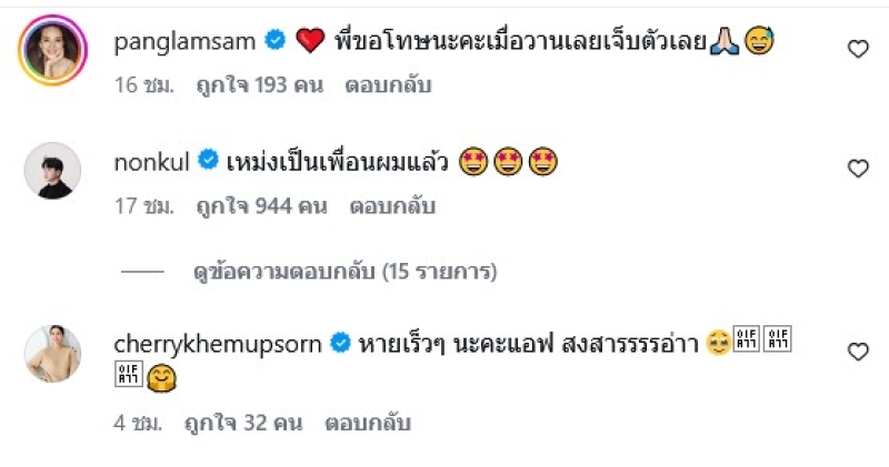 ท่ามกลาง เพื่อนๆในวงการและแฟนๆก็ต่างเข้ามาส่งกำลังให้หายเร็วๆ กันจำนวนมาก