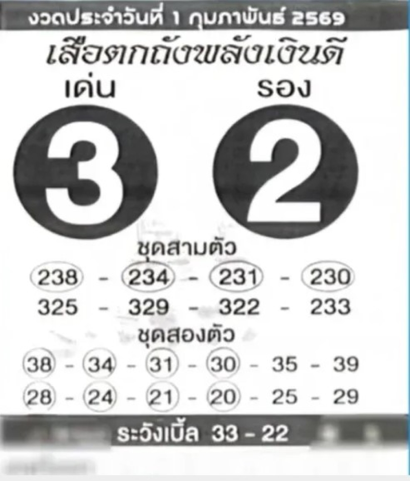 เลขเด็ด เสือตกถังพลังเงินดี หลังงวดที่แล้วเข้าเต็มๆ ลุ้นต่อวันที่ 1 กุมภาพันธ์ 69