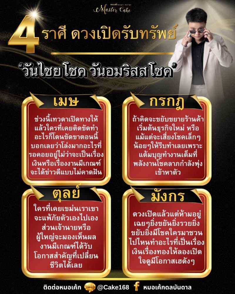 หมอเค้ก เปิด 4 ราศี ดวงเปิดรับทรัพย์ วันไชยโชค วันอทริสสโชค