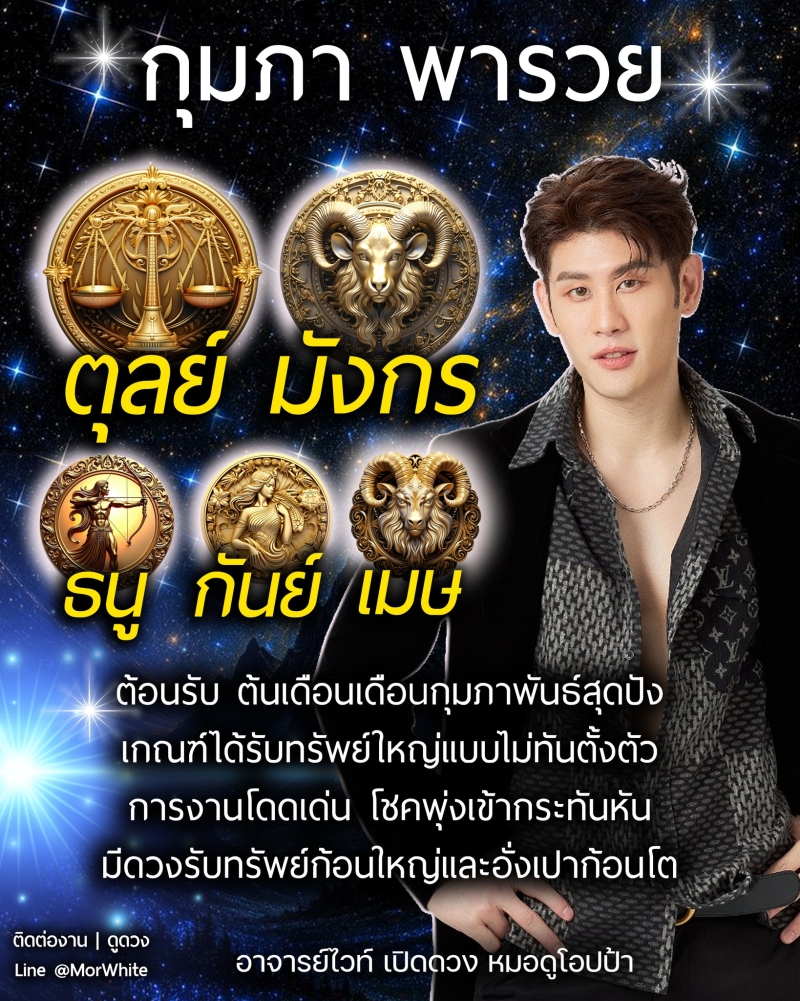 กุมภาพารวย อ.ไวท์ เปิดดวง เผย 5 ราศีรับทรัพย์ใหญ่ เงินเข้าไม่หยุด