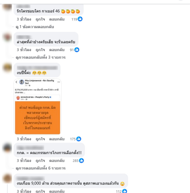 ถ้าจะต้องรณรงค์กัน ตรวจสอบกันเอง แก้ไขปัญหากันเอง จะมีพวกพี่ไว้ทำไมครับ ? กกต. ได้งบไปเท่าไหร่นะ ? งบไม่พอหรือยังไง ? ห้ะ ห้ะ ห้ะ ? ตอบ ! โดยมีหลายคนต่างเข้ามาคอมเมนต์เห็นด้วยกันอย่างมาก