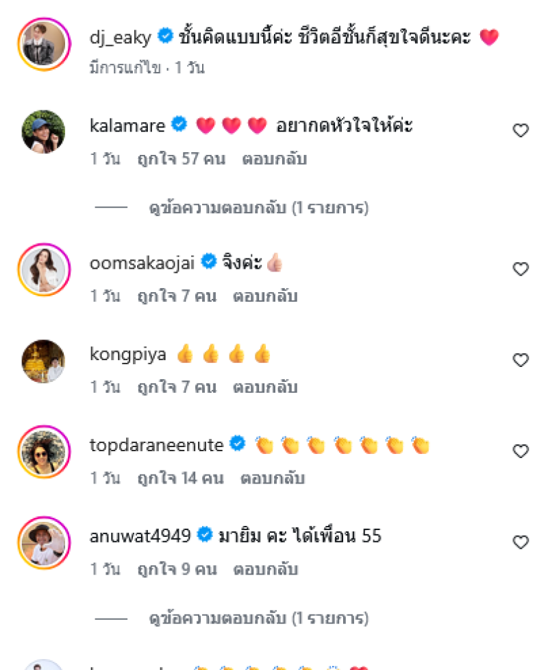 คบคนนิสัยดีจริงใจไม่โกงเพื่อนดีกว่าค่ะ รวยจนไม่ได้วัดคุณค่าความเป็นคน และความดีก็ทำให้เรารอดพ้นจากคนไม่ดีค่ะ ชั้นคิดแบบนี้ค่ะ ชีวิตอีชั้นก็สุขใจดีนะคะ โดยมีคนในวงการต่างคอมเมนต์เห็นด้วยกันอย่างมาก