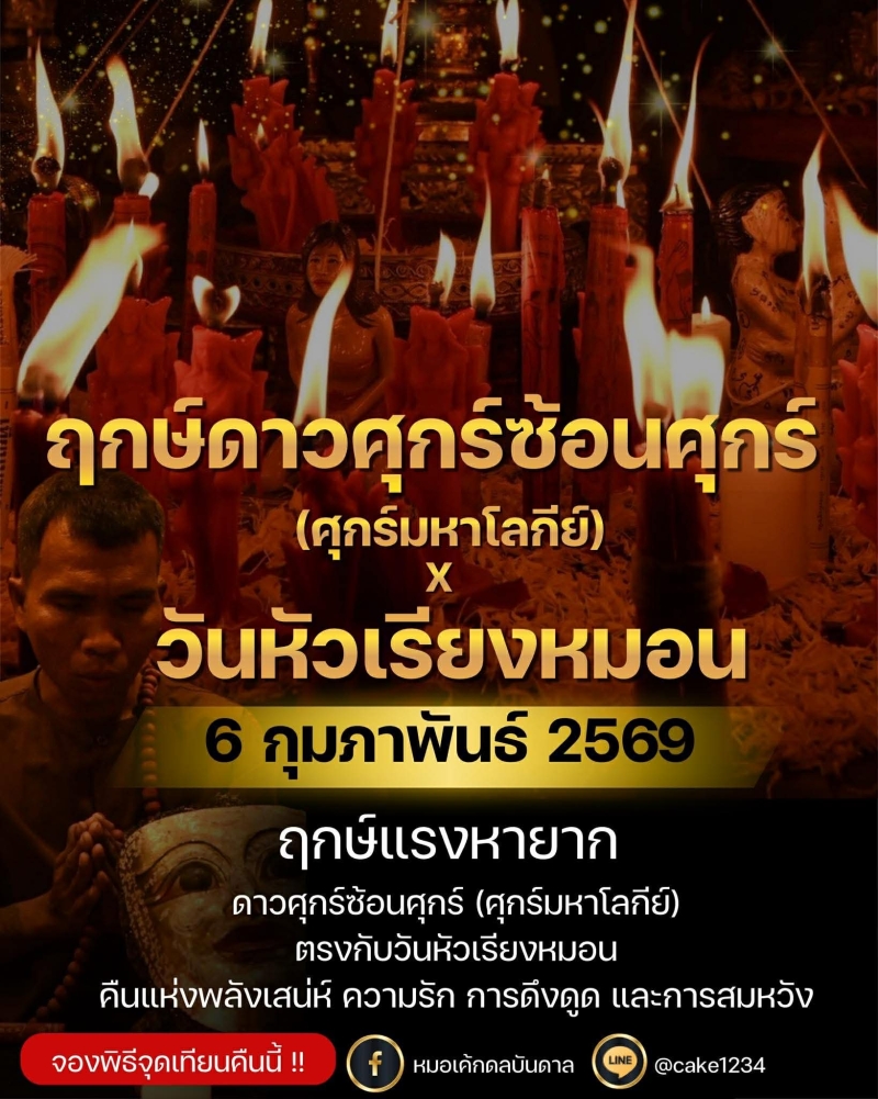 หมอเค้ก เผย 6 ก.พ.69 ฤกษ์แรงหาได้ยาก ดาวศุกร์ซ้อนศุกร์ หนุนดวงความรักพุ่ง