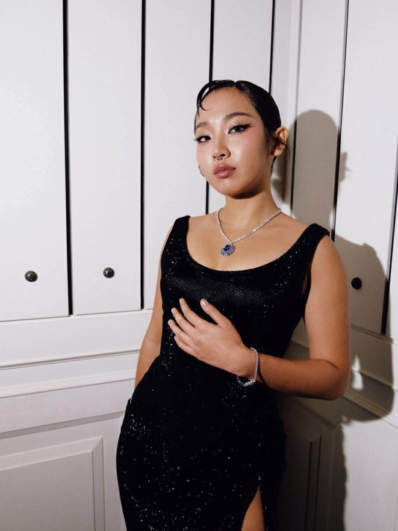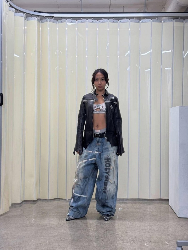 ลุคของเธอสะดุดตาไม่น้อย ด้วยไอเท็มสีสันสดใสและเสื้อที่มีข้อความโดดเด่น สะท้อนสไตล์ชัดเจนตามแบบฉบับของศิลปินสาว