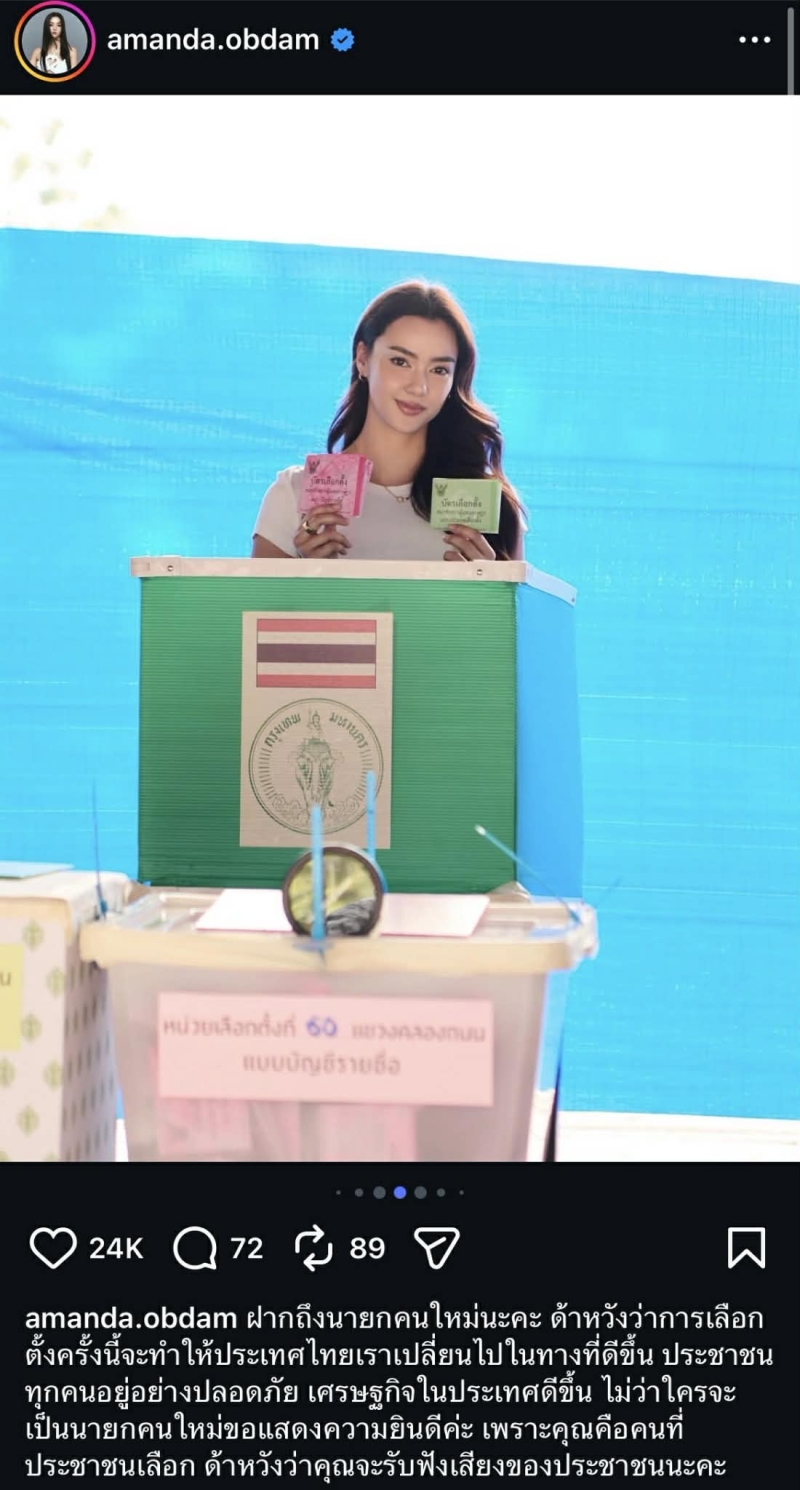 พูดแทนใจใครหลายคน อแมนด้า โพสต์ภาพเข้าคูหา ฝากแคปชั่นแรงถึงว่าที่นายกคนใหม่