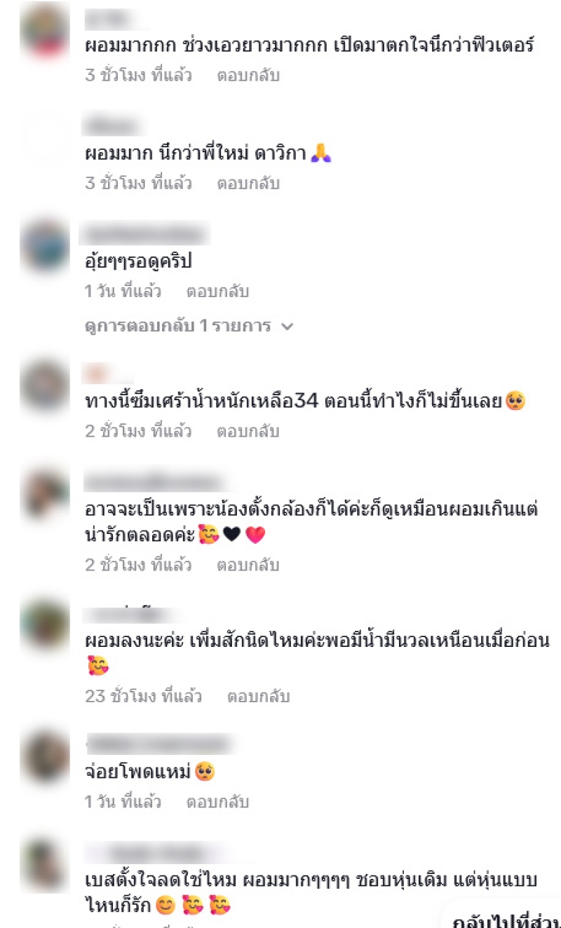 อาทิ ทำไมผอมลง,มีแต่คนว่าเบสผอม ถึงกับต้องไปหาคลิปเบสเมื่อก่อนว่าตอนนั้นกับตอนนี้ต่างกันไหม อ่า,น้องเบสผอมยาวไป เพิ่มน.น อีกนิด จะสวยมากๆ,ผอมมากกก ช่วงเอวยาวมากกก เปิดมาตกใจนึกว่าฟิวเตอร์,ผอมมาก นึกว่าพี่ใหม่ ดาวิกา