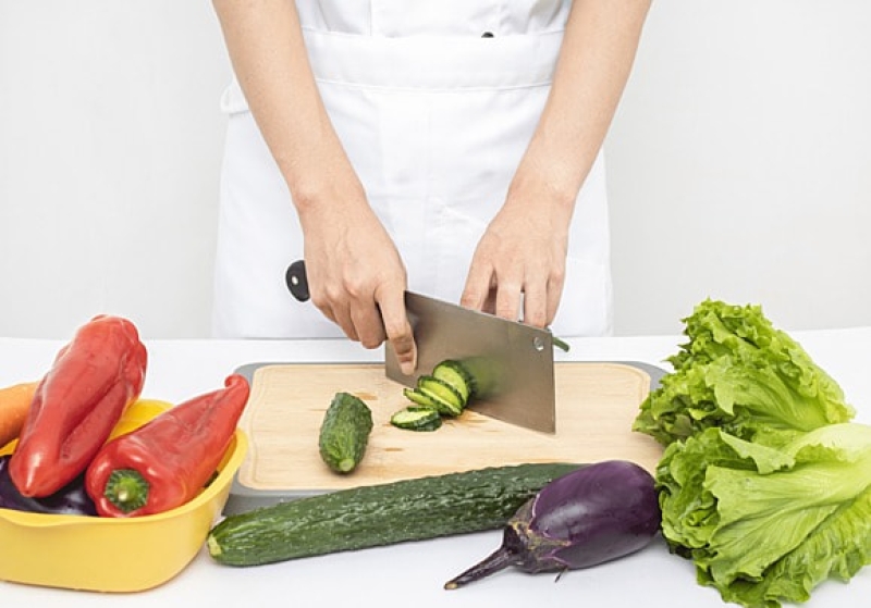 1. หั่น/สับ: ผักให้เป็นชิ้นเล็กๆ