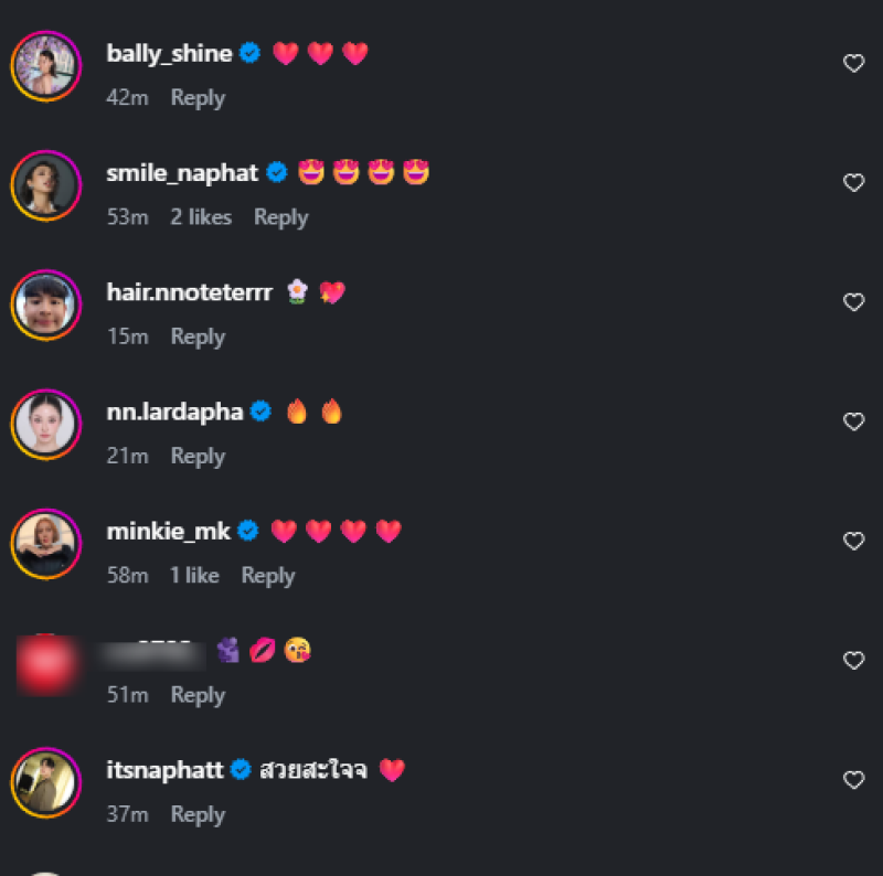 ท่ามกลาง เพื่อนๆในวงการบันทมิง เข้ามาคอมใเมนต์กันจำนวนมาก ถึงความสวยของเจนนี่