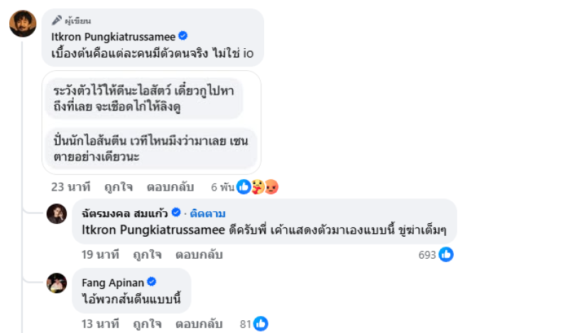 ทางจ๋าย ยังเผยแชทใต้โพสต์เพิ่มเติมด้วย พร้อมระบุว่า เบื้องต้นคือแต่ละคนมีตัวตนจริง ไม่ใช่ io ท่ามกลางคนดังและแฟนๆเข้ามาคอมเมนตืกันเพียบ