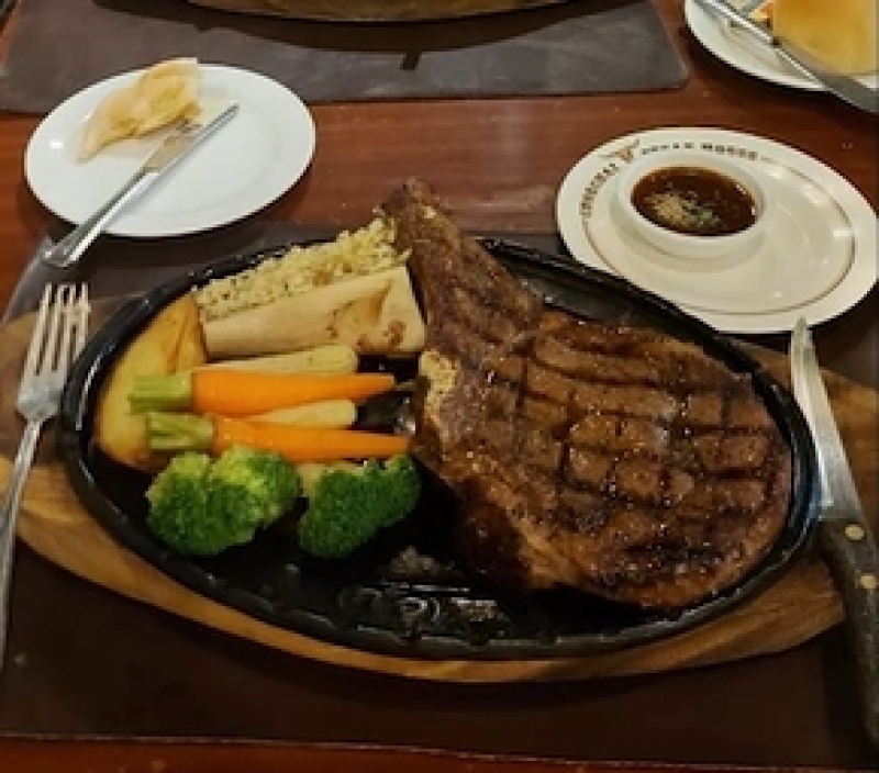 ตนสั่งไปทั้งหมด 6 ชิ้น เป็นสเต๊กเนื้อ 3 ชิ้น, หมู 1 ชิ้น กินที่ร้าน อีก 2 ชิ้นที่เหลือกลับบ้าน แต่เมื่อคิดเงินกลับถูกคิด 12,773.60 บาท ตนจึงถามพนักงานว่า คิดราคาผิดโต๊ะหรือเปล่า เพราะสเต๊กราคาชิ้นละ 450 บาท สั่ง 6 ชิ้นรวมน้ำดื่ม ไม่น่าเกิน 4,000 บาท